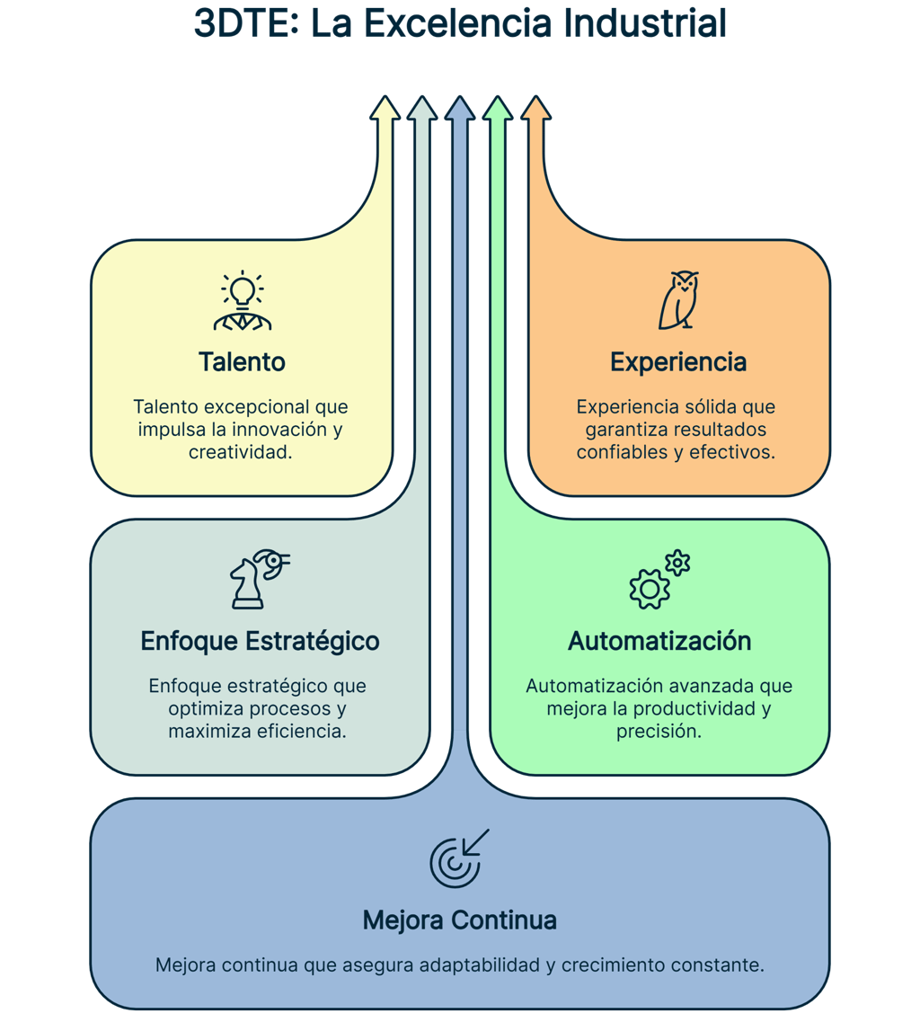 En 3DTE, contamos con un equipo áltamente cualificado que combina talento, experiencia y un enfoque estratégico orientado a la automatización y mejora contínua, que nos permite posicionarnos como una referencia en el diseño de plantas industriales.