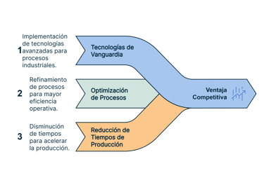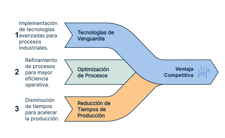 Nuestra capacidad para integrar tecnologías de vanguardia nos permite ofrecer soluciones que optimizan los procesos industriales y reducen los tiempos de producción, lo que nos brinda una ventaja competitiva significativa en un mercado donde el tiempo es un factor crítico.